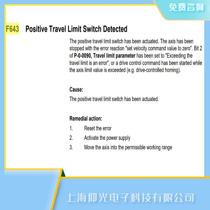 關(guān)于上海力士樂(lè)伺服驅(qū)動(dòng)器報(bào)代碼F643檢測(cè)到正行程限位開(kāi)關(guān)故障維修價(jià)格的技術(shù)問(wèn)題上海仰光電子提供24小時(shí)免費(fèi)咨詢(xún)服務(wù).